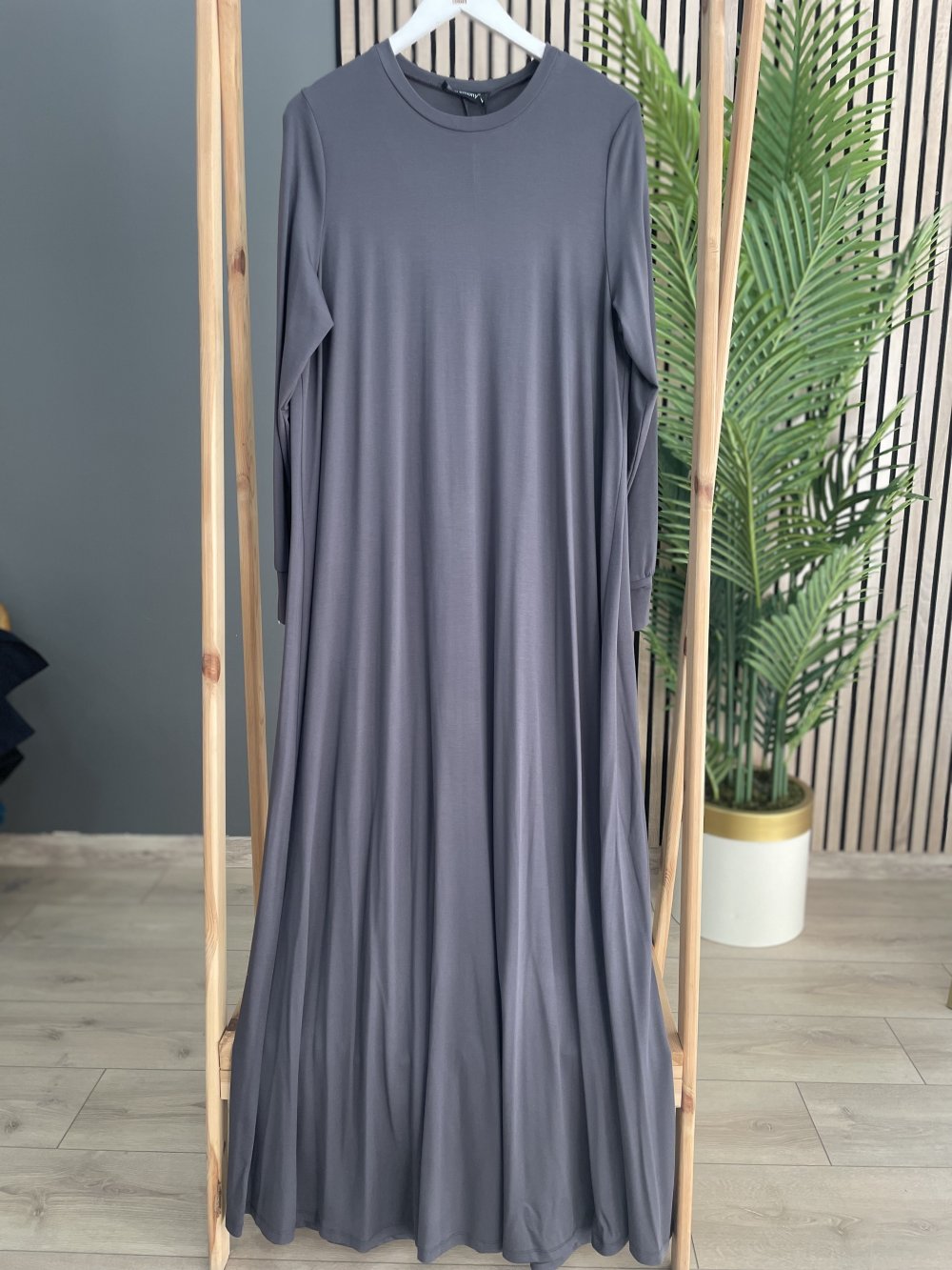 Ceremony 2026 KIŞ Basic Uzun Kollu Bambu Elbise Gri