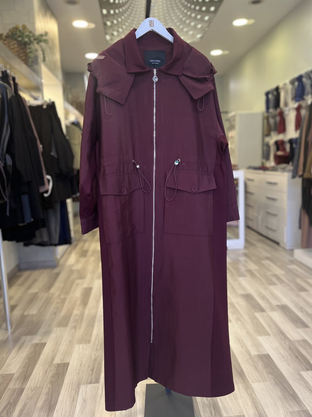 Ceremony 2026 KIŞ Yanları Çelik Garnili Belden Büzgülü Fermuarlı Dubai Kap Bordo