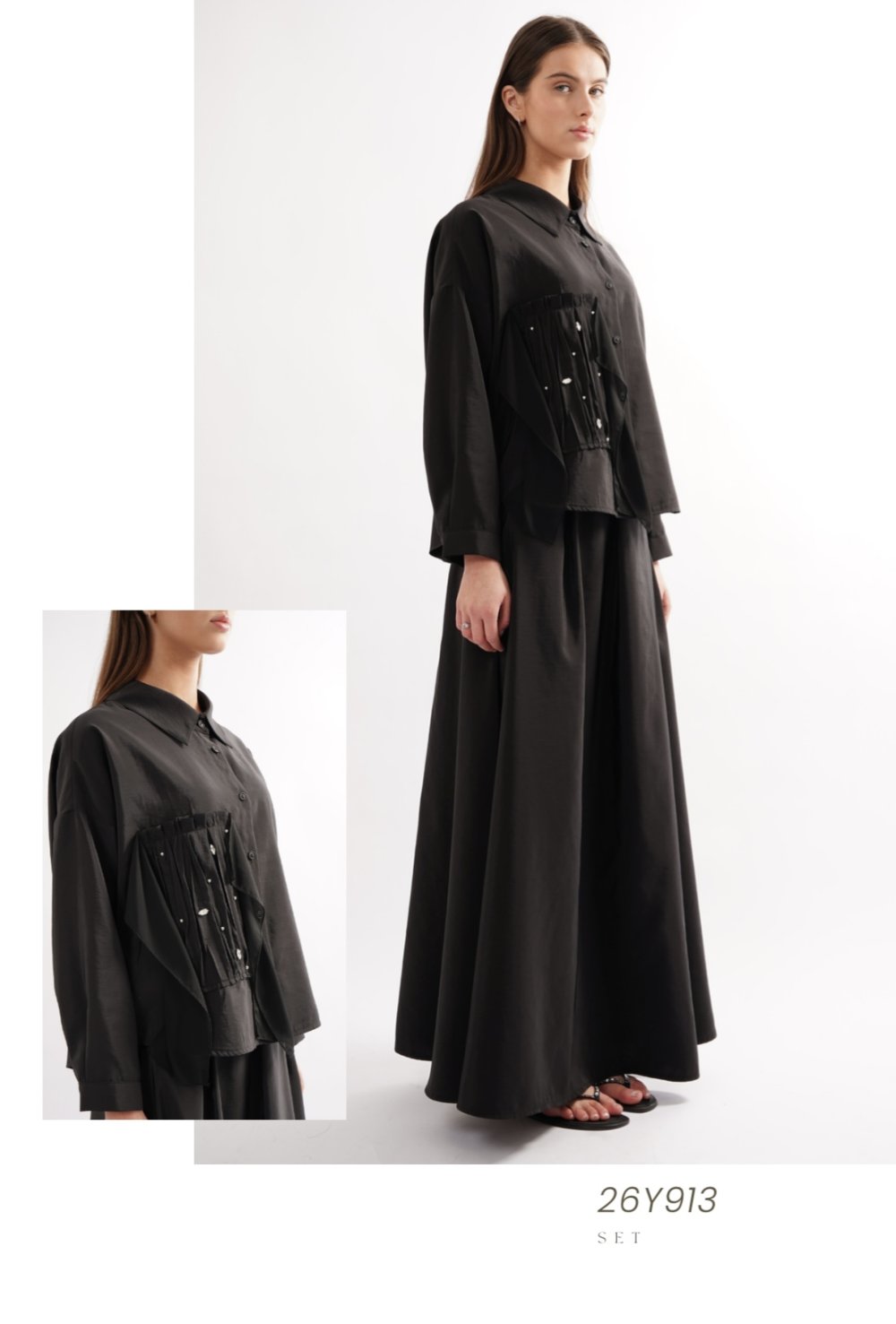 Eteğin arka beli lastikli ve fermuarlıdır. Ölçüler lastik açılmadan alınmıştır.