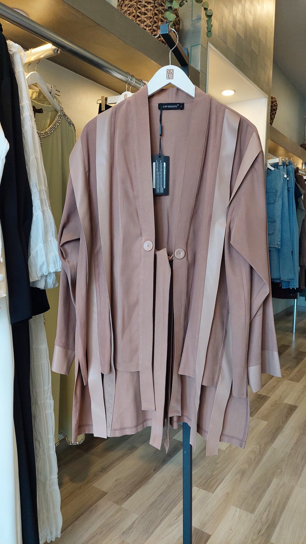 Ceremony Anjelik Önden Bağlamalı Saçaklı Ceket Ten Rengi