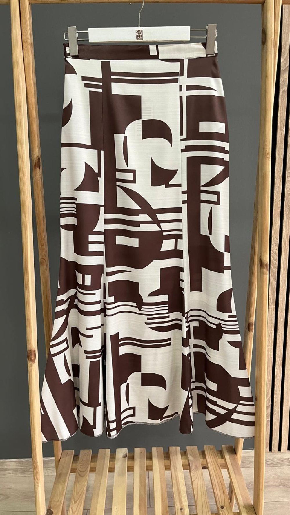 Ceremony Desenli Saten Balık Etek Karışık Desenli