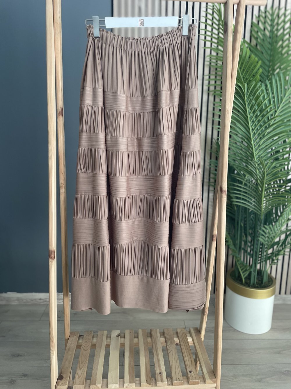 Ceremony Enine ve Boyuna Pilise Etek Camel