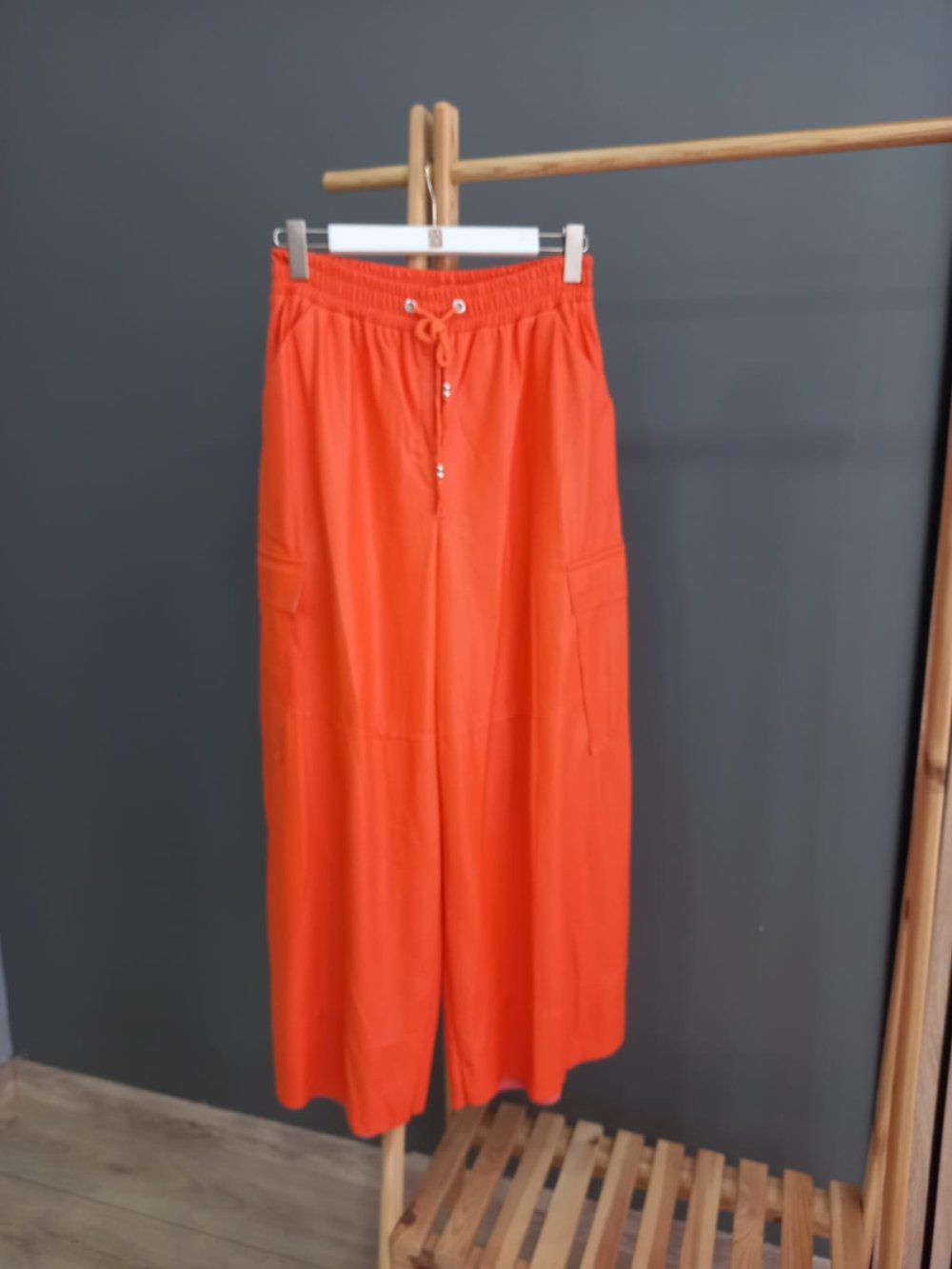 Ceremony İki Cepli Beli Lastikli Bol Deri Pantolon Turuncu