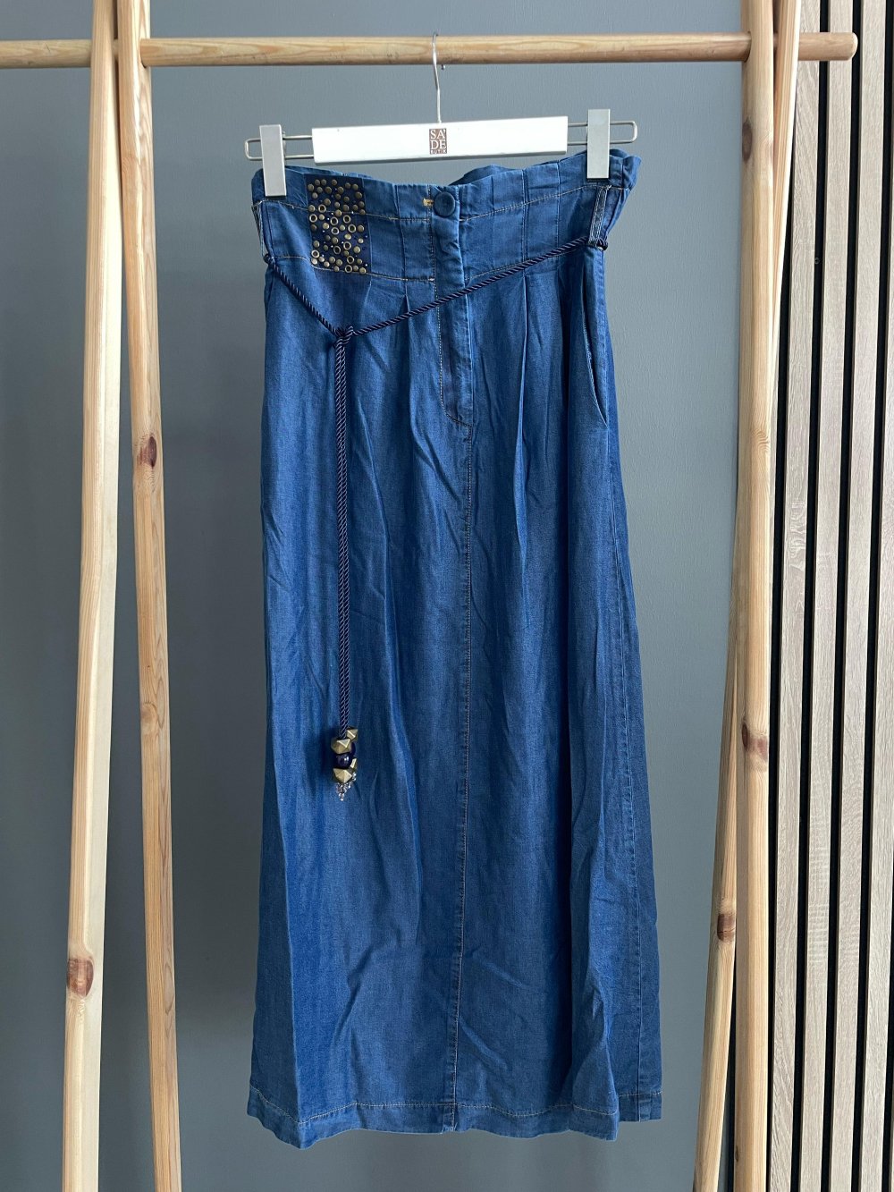Kumaş Türü: %100 TENCELÜrünümüzün beli lastiklidir. Ölçüler lastik açılmadan alınmıştır. Yandan fermuarlıdır.