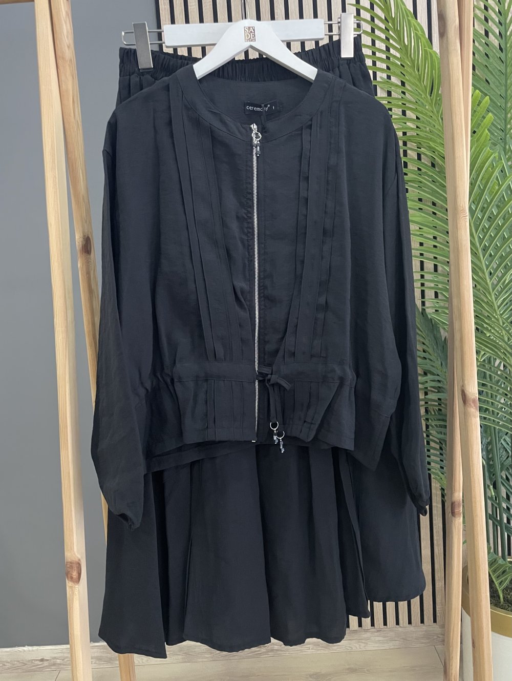Ceremony Kendi Kumaşından Aplikeli Önü Fermuarlı Ceketli Etekli Cupra Takım Siyah