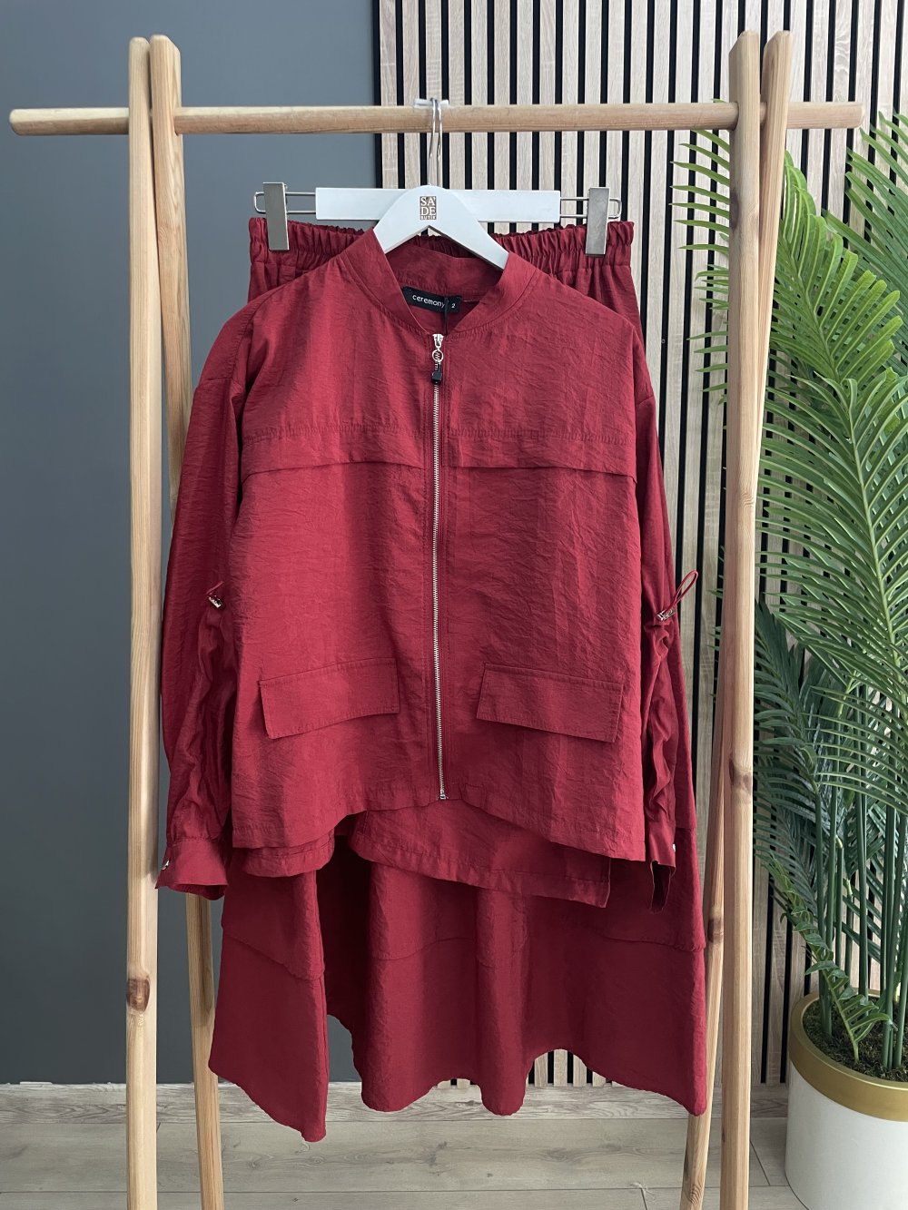 Ceremony Kolları Lastikli Stoper Detaylı Bolerolu Etekli Takım Kırmızı
