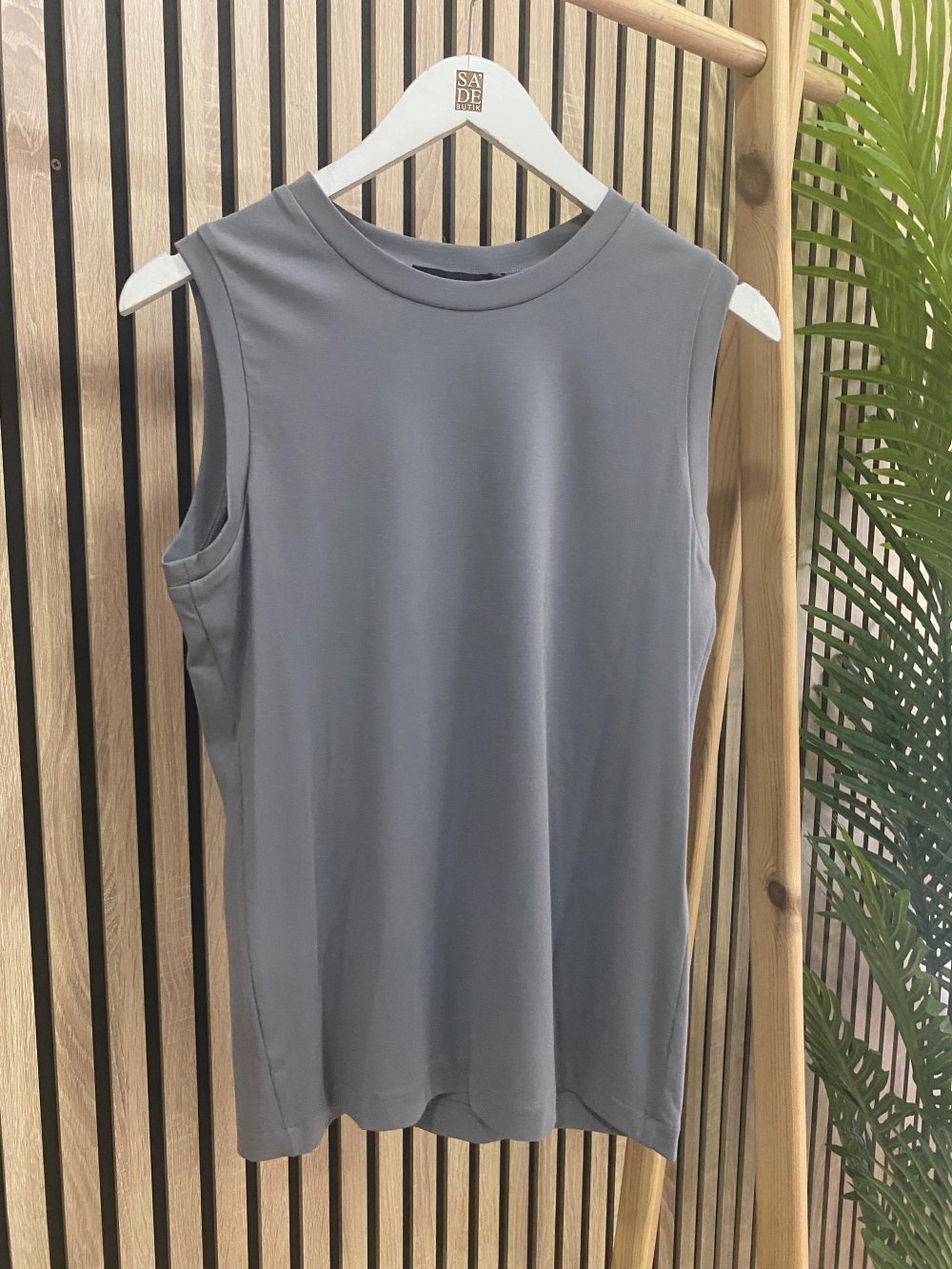 Ceremony Kolsuz Bambu Kısa Bluz Gri