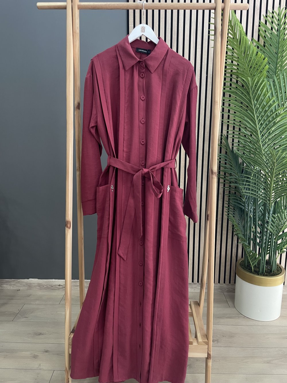Ceremony Önü Ve Arkası Aller Detaylı Yandan Torba Cepli Pasion Gömlek Elbise Bordo