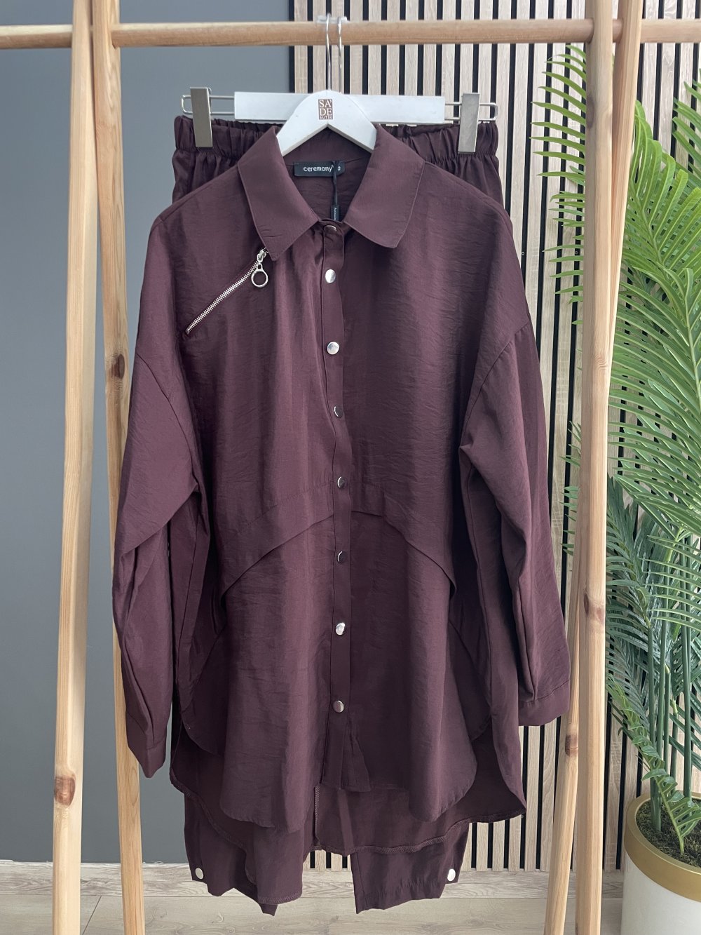 Ceremony Pantolonu Ve Tuniği Fermuar Ve Çıt Çıt Detaylı Dubai Takım Bordo