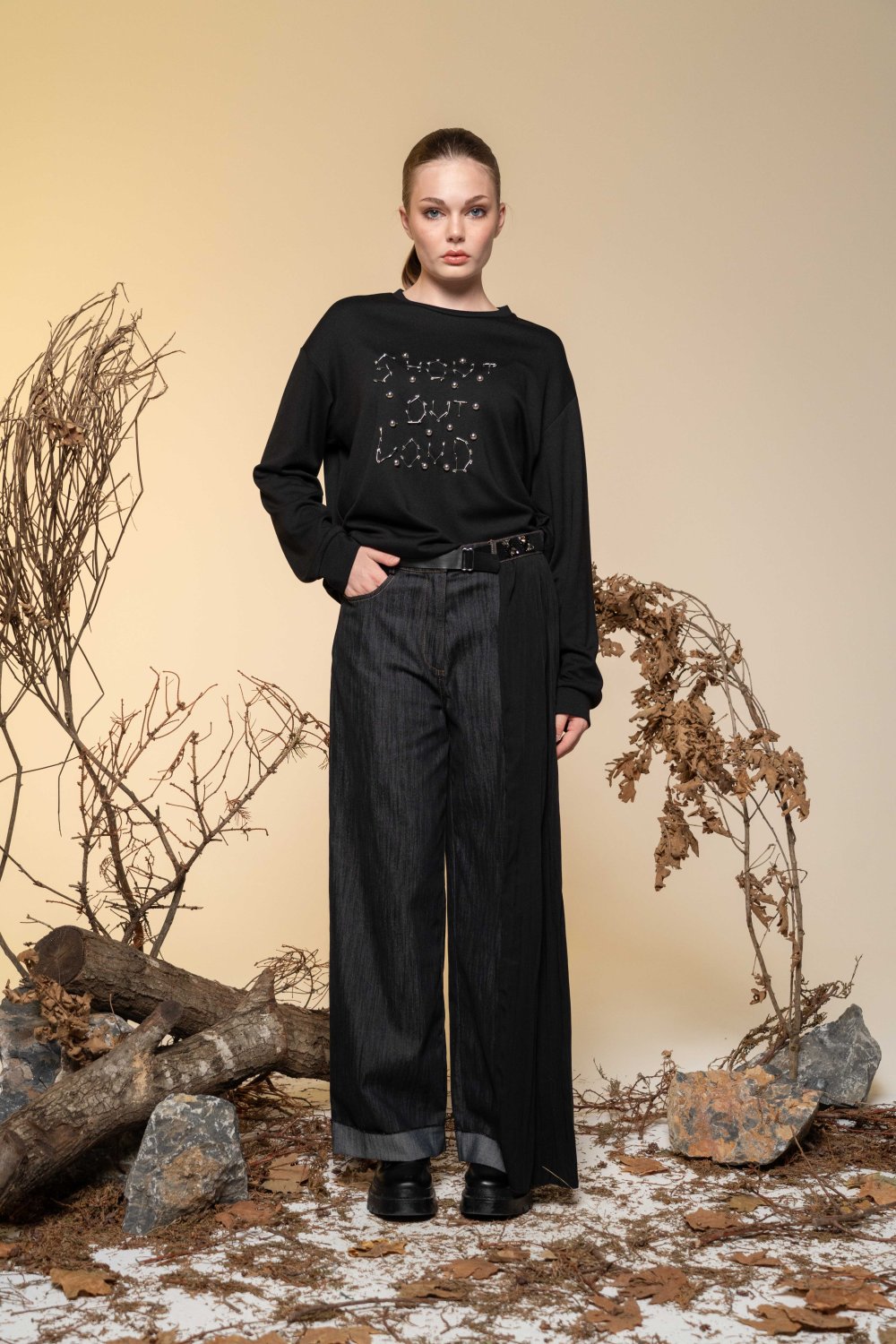 Ceremony Sol Yanı Tencel Kraşlı Kot Pantalon Siyah