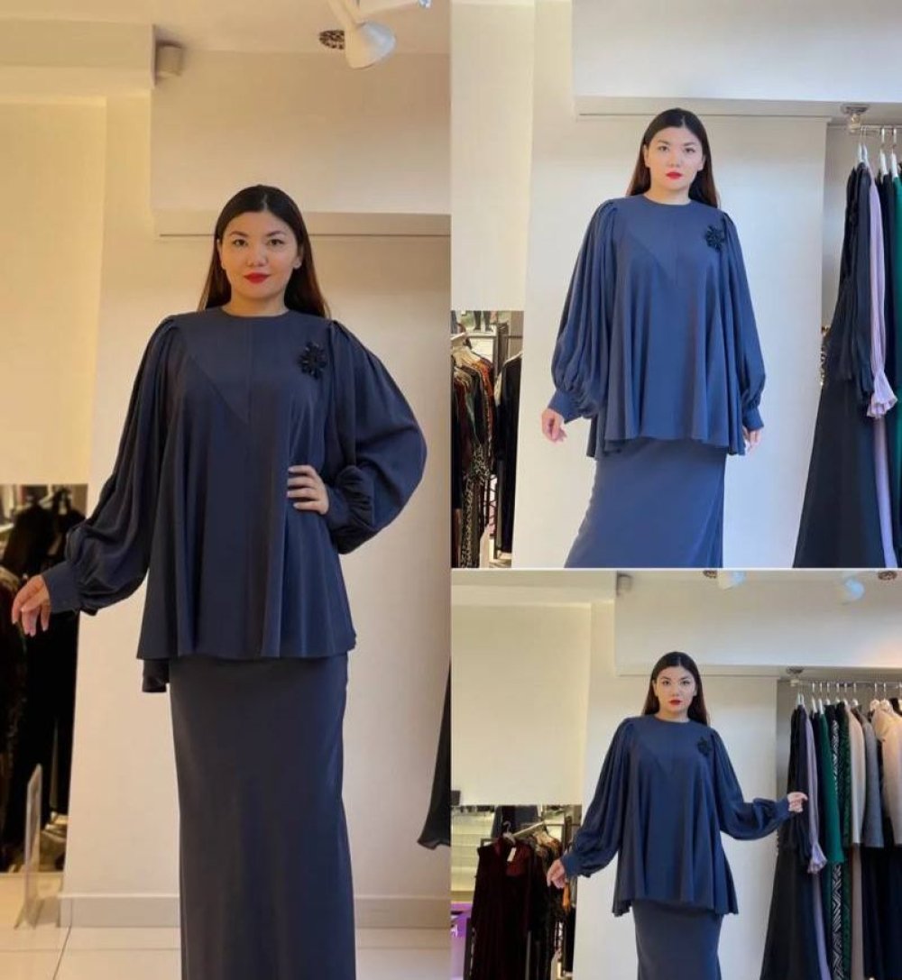 Ceremony Tuniğinin Kolları Balon Verev Tencel Etekli Takım Lacivert
