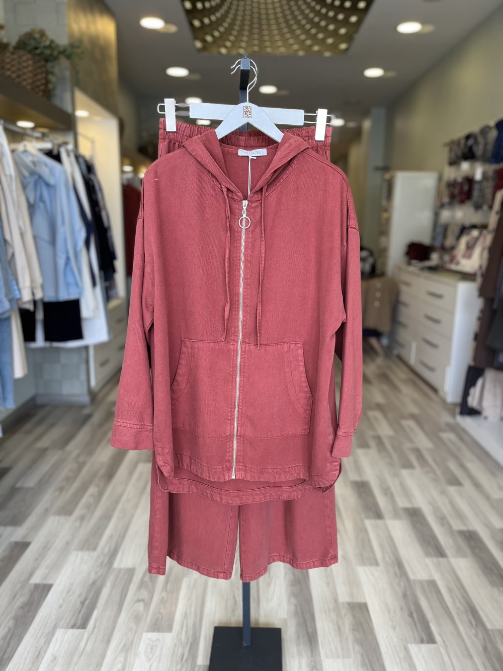 Magazin Kapüşonlu Tencel Takım Kiremit