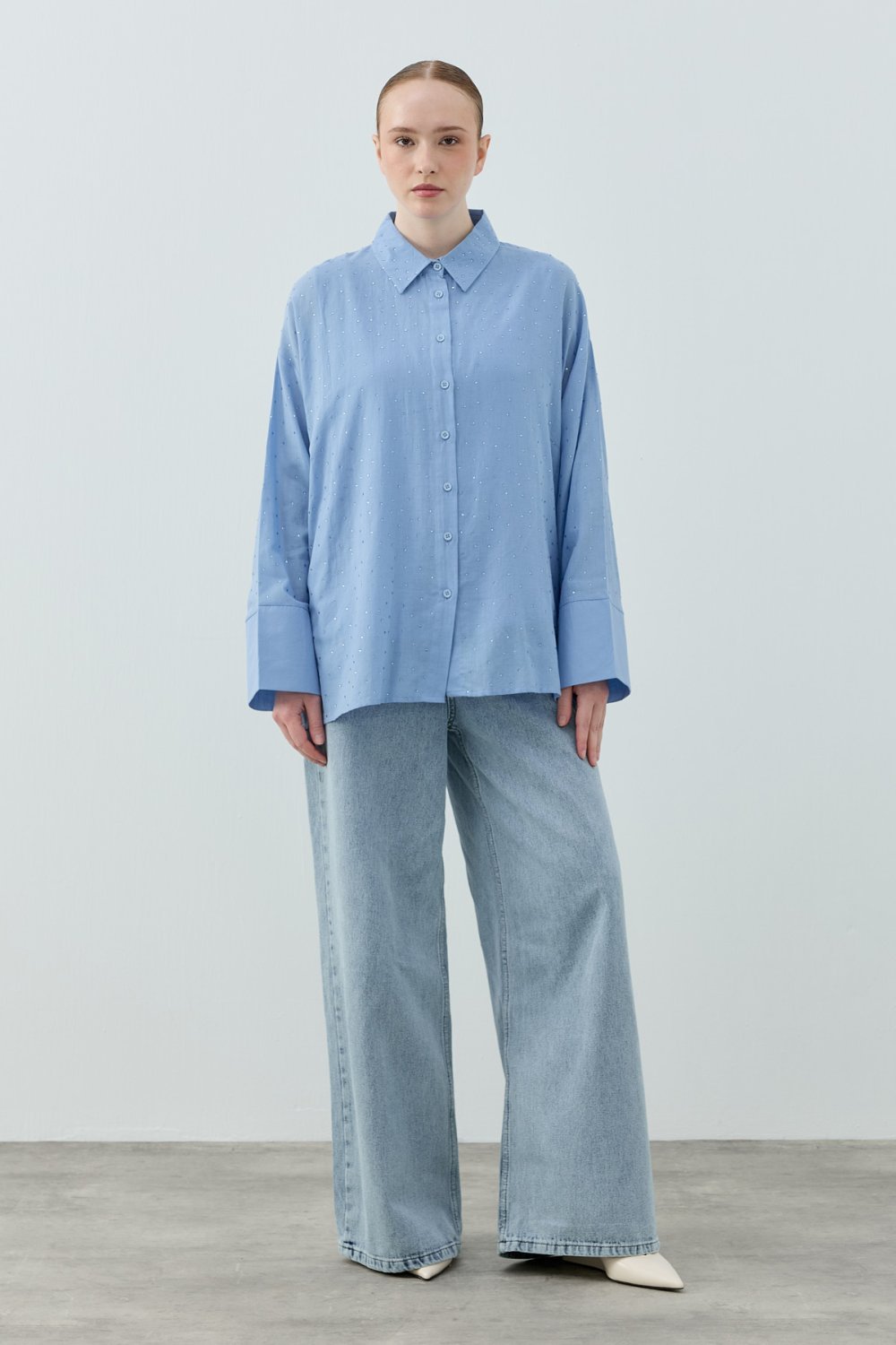 Merwish 2026 Yaz Pamuk Taşlı Gömlek Bebe Mavisi