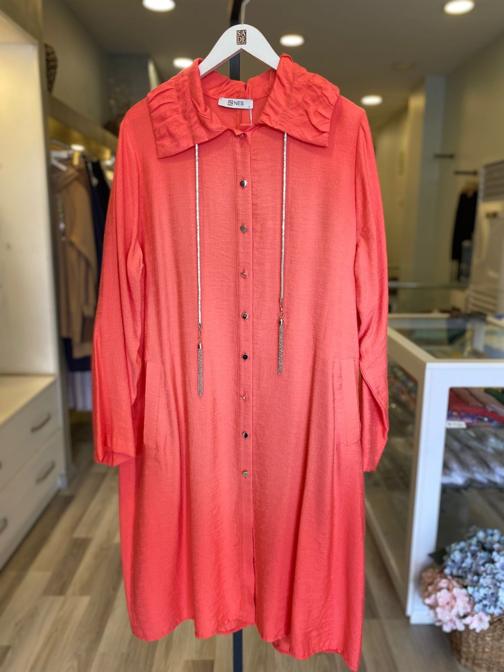 Nes Sim Bağcıklı Uzun Tunik Mercan