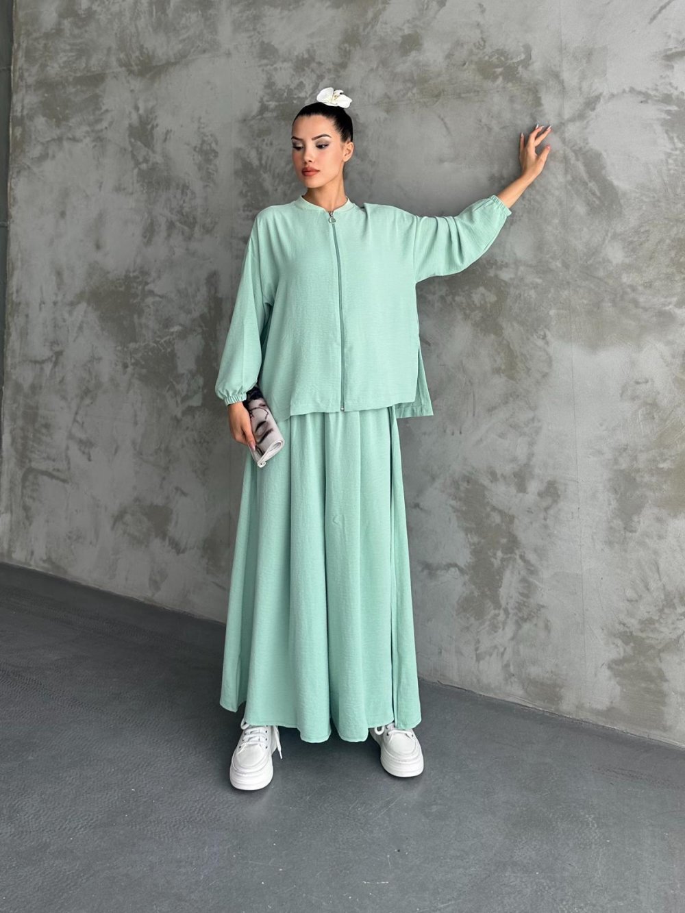 SADE Ayrobin Kısa Ceket Pantolonlu Takım Mint Yeşili