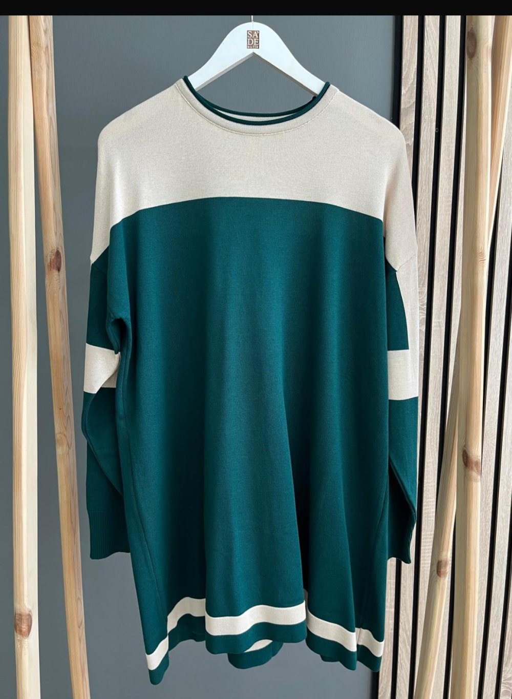Şirin İki Renkli Merserize Tunik Zümrüt