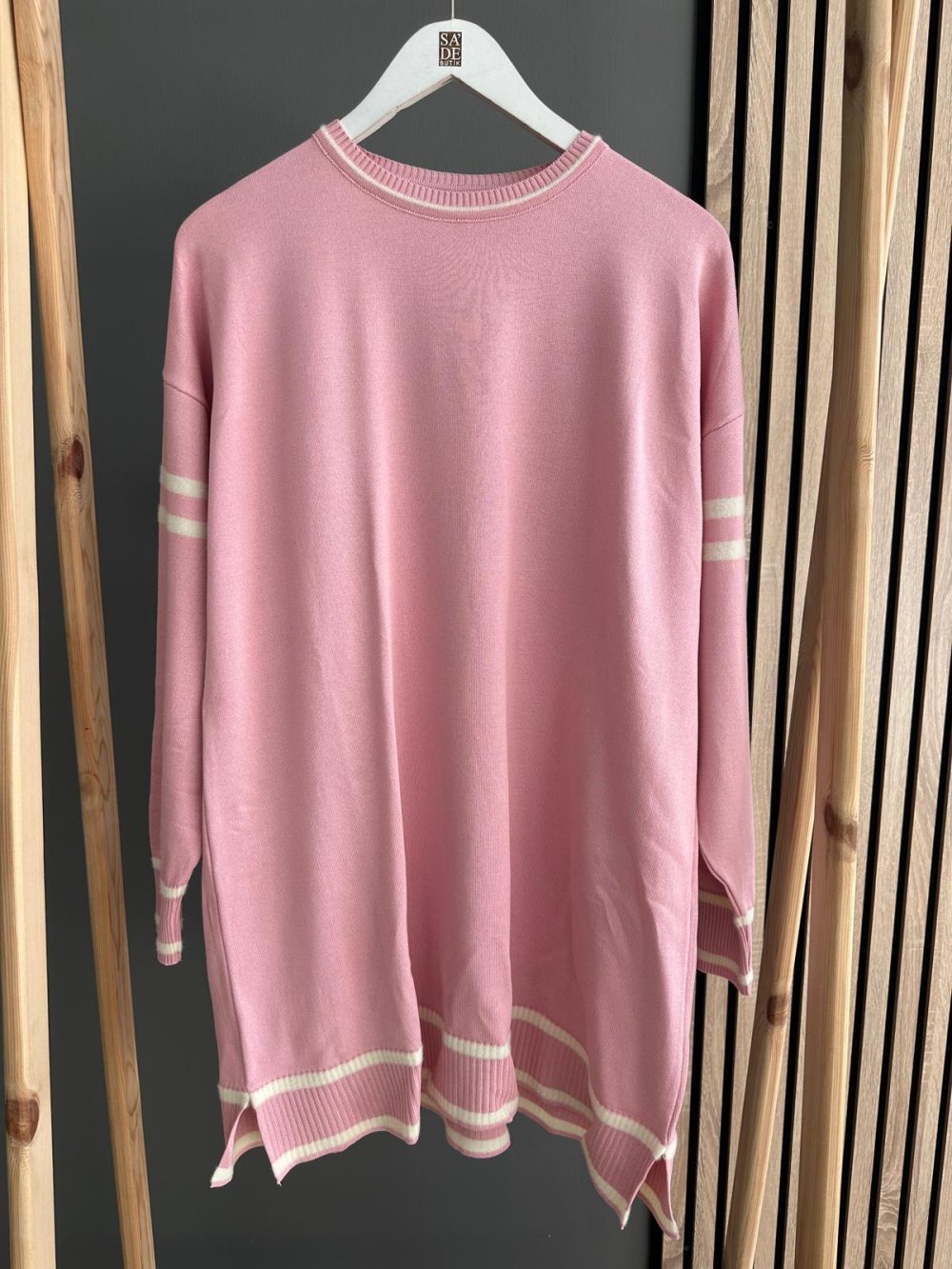 Şirin Kolu Çizgili Merserize Tunik Pembe