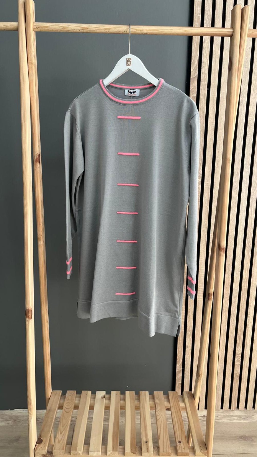 Şirin Önü Çizgi Detaylı Tunik Gri